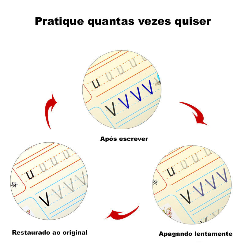 Pois com o a nova caneta mágica a tinta desaparece em 15 minutos, incentivando seu filho(a) a praticar novamente de maneira divertida e fácil.
